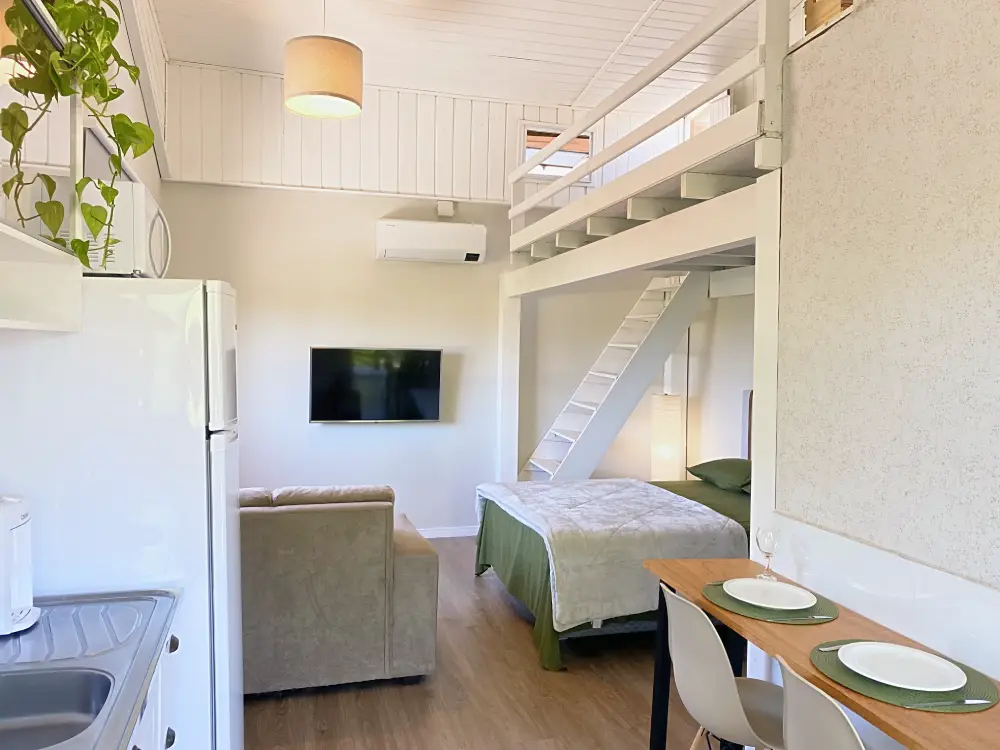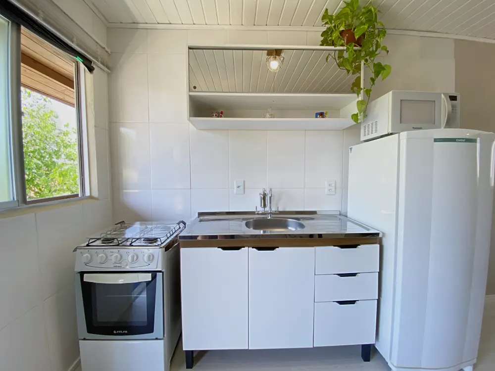 A acomodação dispõe de TV smart, banheiro privativo com chuveiro, ar condicionado e cozinha com micro-ondas, geladeira e fogão. Algumas unidades incluem varanda térrea e/ou sacada.